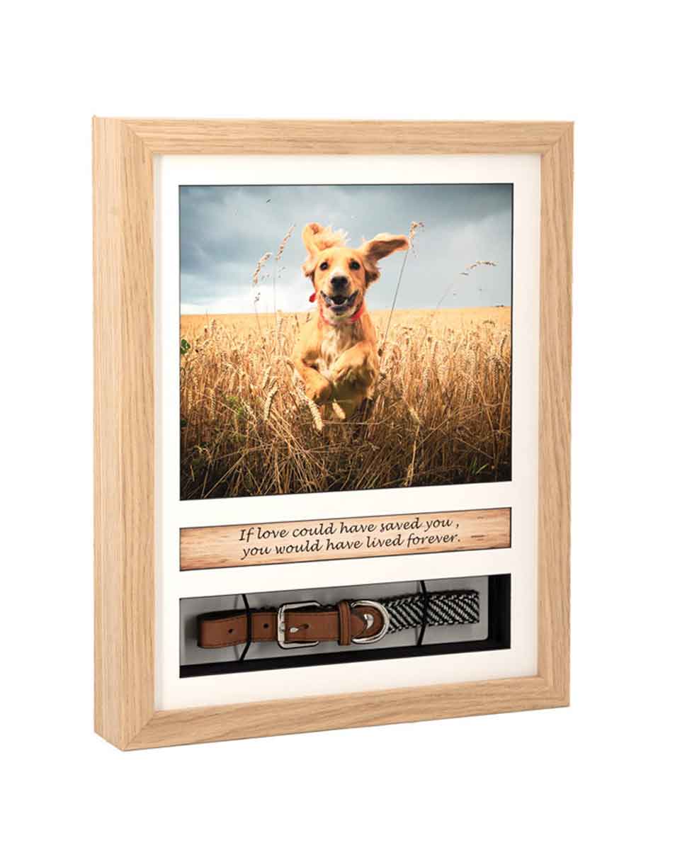 Our beautifully crafted pet urns are truly unique. Our range allows you to create a timeless memorial to your beloved pet, displaying those precious keepsakes of a collar and/or tag with a professionally printed photo alongside your chosen printed inscription. At the back, each frame has a secure ashes compartment, accessed with a strong magnetic door to keep the ashes safe.
