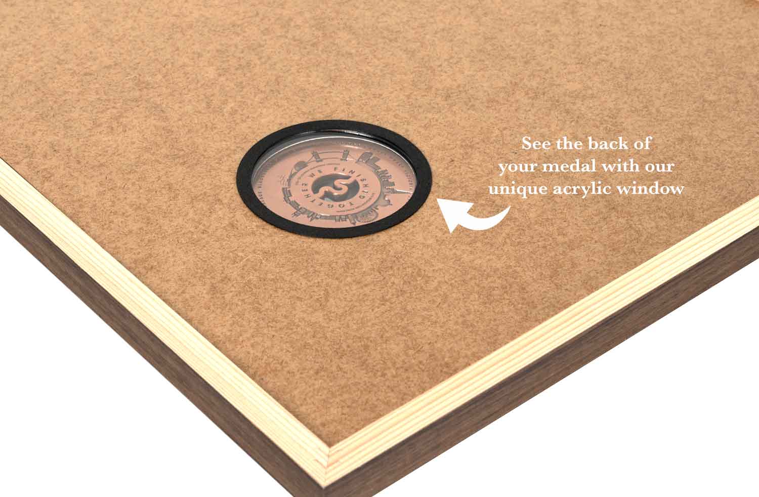• See the back of your medal with an acrylic window at the back