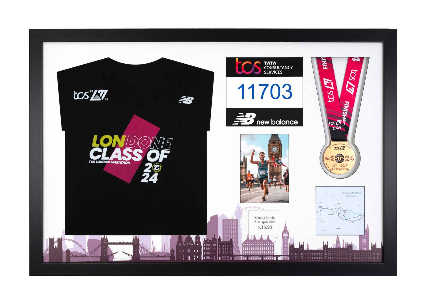 London Marathon 2024 - Medal / Photo / BIB / Shirt Frame