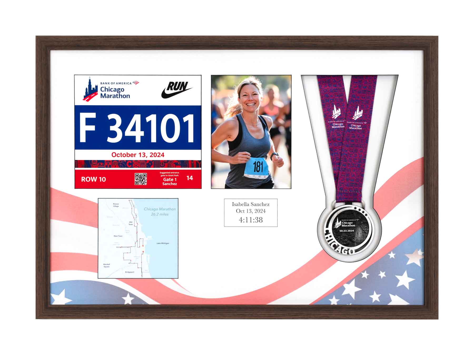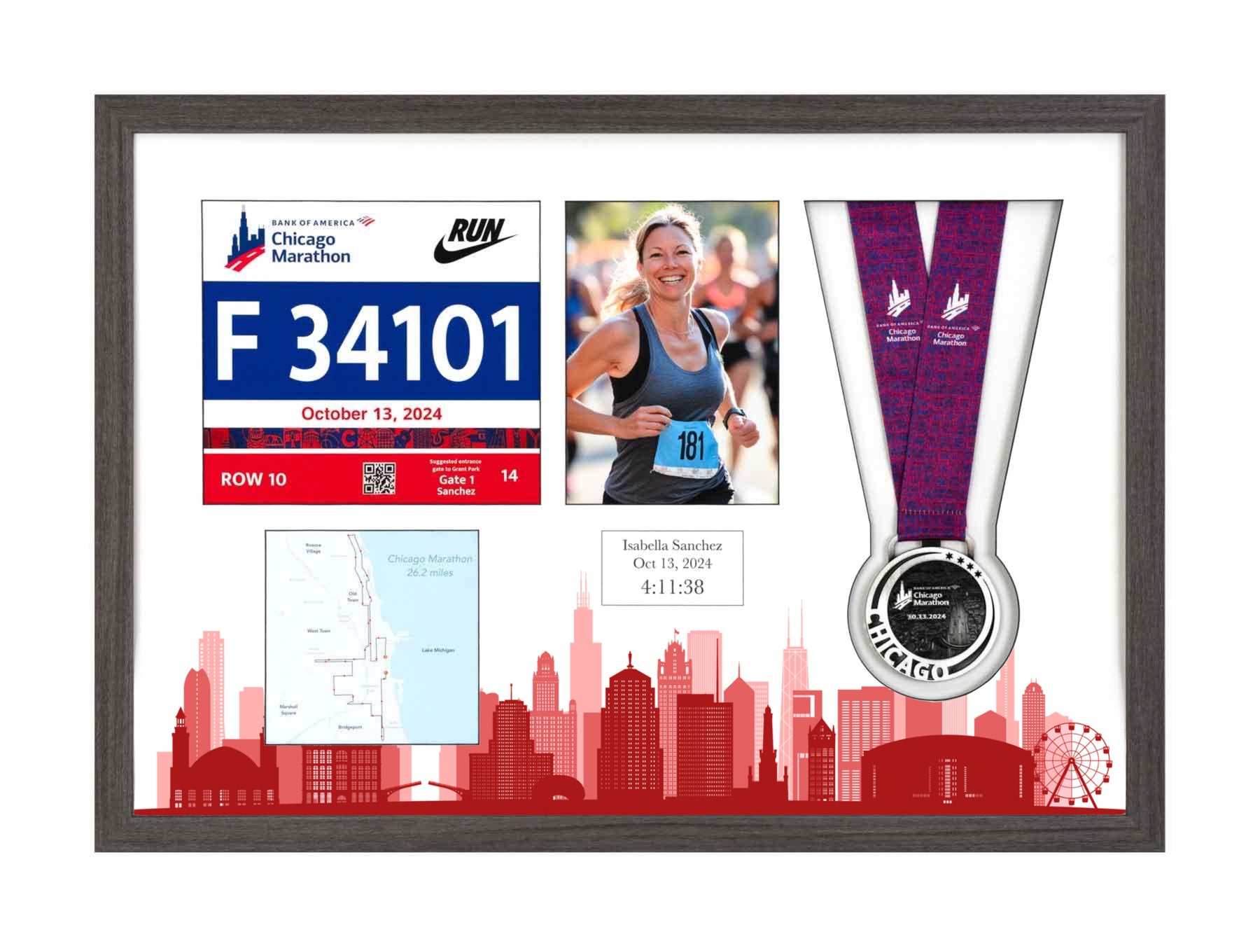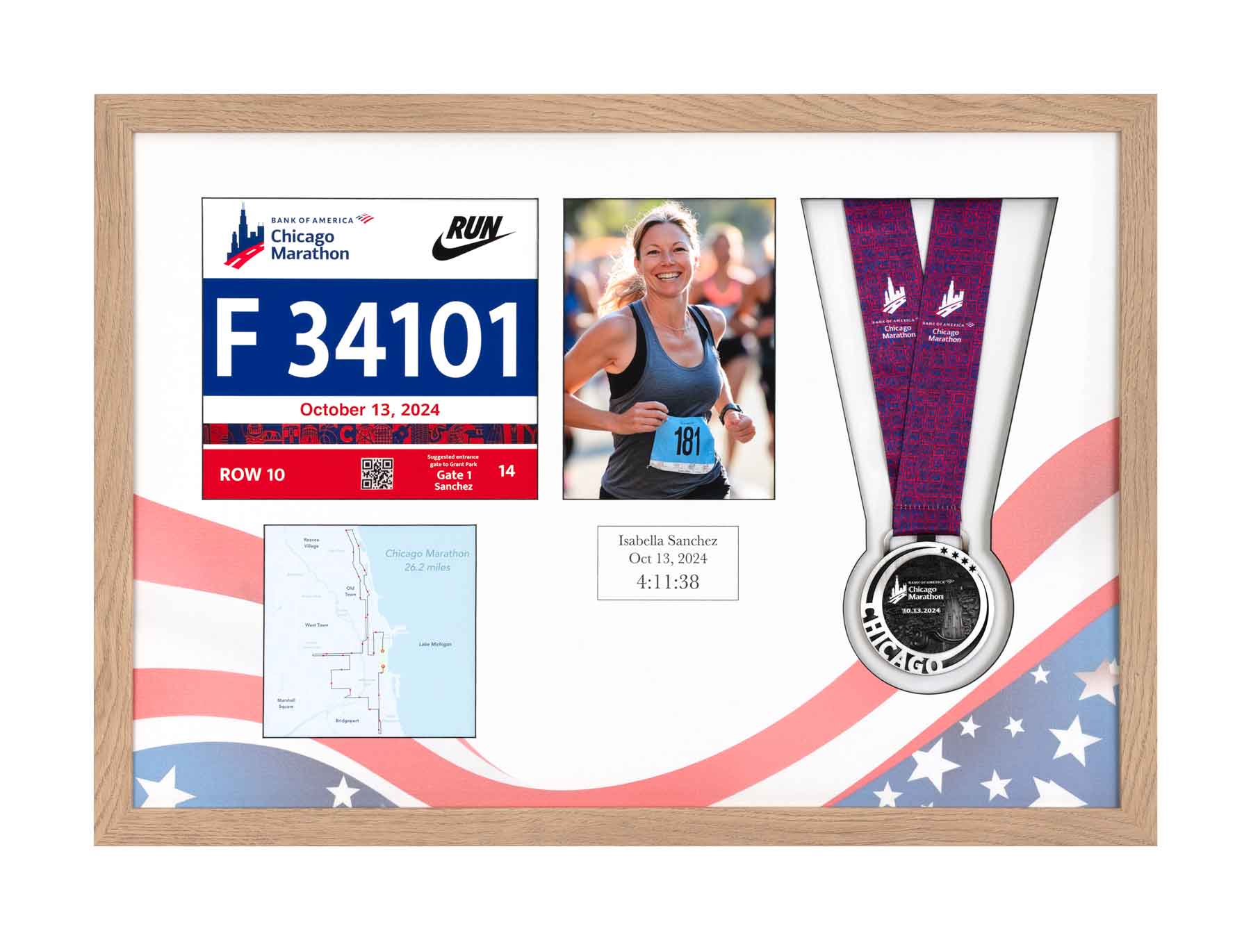 Our frames are designed for uniqueness and individuality. Creative layouts, vibrant colors, and sleek finishes allow runners to reflect their personal journey, making each display as distinctive as the achievement it holds.